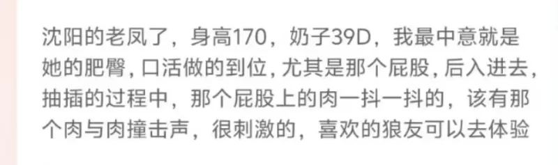 信息分类:楼凤兼职 地区:辽宁省-沈阳 信息来源:好友推荐 年龄:39 颜值身材:熟女了 服务项目:毒龙,乳推,乳交,口活,多姿势, 价格:夜1500 环境设备:安全老小区 详细地址:本段信息已隐藏,请先登陆。点击登陆 , 或者 点击注册 联系方式(手机/电话):本段信息已隐藏,请先登陆。点击登陆 , 或者 点击注册 详细介绍: 话不多说直接看照片! 楼凤兼职