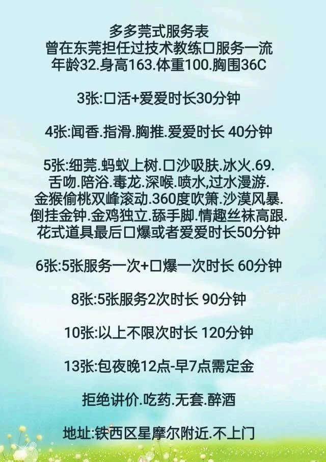 信息分类:楼凤兼职 地区:辽宁省-沈阳 信息来源:本人体验 年龄:30+ 颜值身材:7 服务项目:口活大活。全套 价格:500 环境设备:有地方可上门 详细地址:本段信息已隐藏,请先登陆。点击登陆 , 或者 点击注册 联系方式(手机/电话):本段信息已隐藏,请先登陆。点击登陆 , 或者 点击注册 详细介绍: 本浪不会写小黄文。体验一次。感觉不错 楼凤兼职