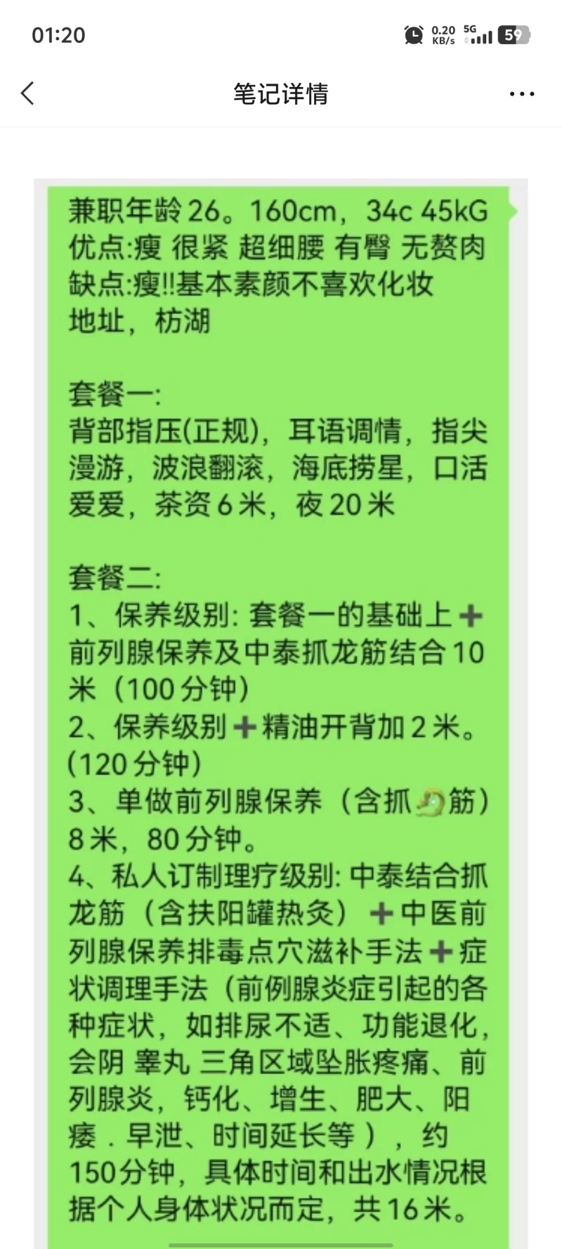 服务项目: 抓龙筋,口活