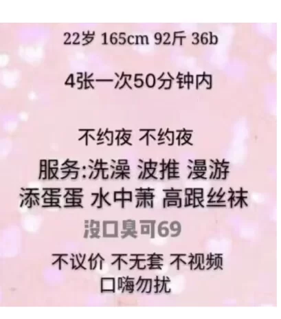 威客管理提示:要求付定金 保证金的,总之提前要钱的都是骗子 去福州出差的时候偶尔看到的qq群消息 约定时间好小姐姐15分钟就到了我的宾馆 见面后正儿八经的莞式服务 特别推荐体验下口活和胸推 口活没齿感特别舒爽 下面紧 做的时候会吸jj有种包裹的感觉
